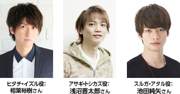相葉裕樹(ヒタチ・イズル役)、浅沼晋太郎(アサギ・トシカズ役)、池田純矢(スルガ・アタル役)