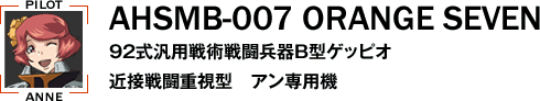 ブラック6と同じフレームを使用し、より近接格闘を重視したセッティングと武装、装甲形状を施した機体。それに伴い、主計算機もブラック6の基本アーキテクチャにブルー1のデータをフィードバックした改良型となっている。熟練したパイロット以外では扱いが難しかったソードカウンターの代わりに、巨大な盾を装備している。 また、ウルガルとの実戦データから、手持ち武器を喪失することも多いと判断されたので、格闘用にレッグスパイクが搭載された。 主要武器の大剣を機体に固定したまま、前方に回転させ突撃するのも 可能となっている。 BLACK6 BLUE1