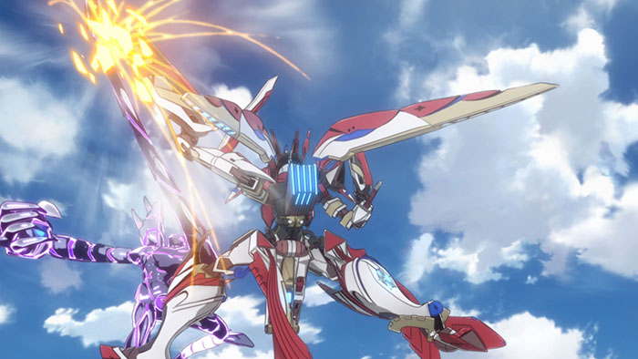 それはいつも通りの出撃ではなかった。戦いの主宙域とは別の場所でウルガル部隊が捕捉されたのだ。その狙いはグランツェーレ都市学園。学園にDNAサンプルがあることの情報がウルガルへ流出したのか?地球への初めての直接攻撃を防ぐべくゴディニオンが動く。しかし、高性能の防御システムを備えた敵機に通常の射撃はいっこうに当たらない。悩むスズカゼは、レイカのアイデアを実戦に投入する。